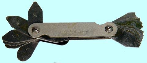 Номинальная толщина щупов, мм - 0,55; 0,6; 0,65; 0,7; 0,75; 0,8; 0,85; 0,9; 0,95; 1,0.