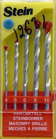 Набор сверл По бетону из 5шт. (d4;5;6;8;10мм) ц/х в пластмас. футляре
