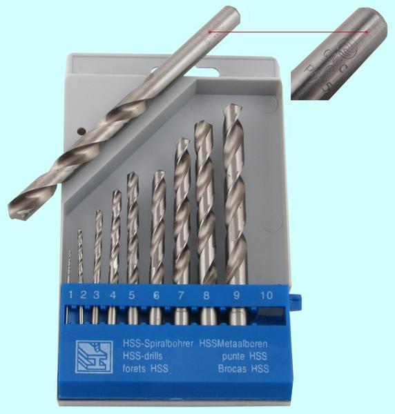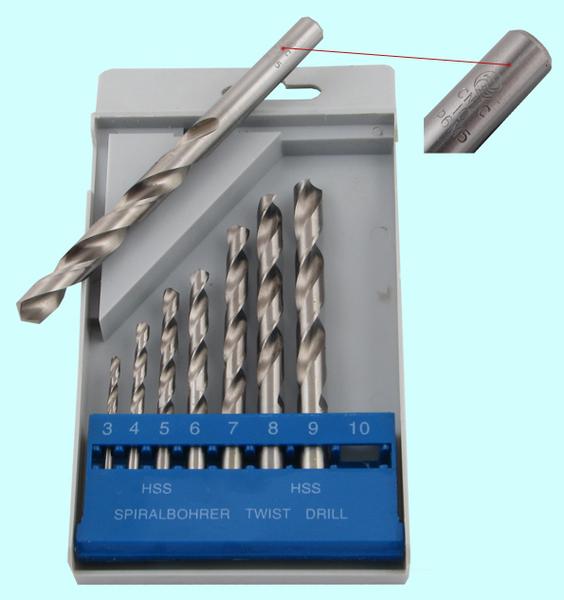 Набор сверл по металлу из 10 шт. (d 1, 2, 3, 4, 5, 6, 7, 8, 9, 10мм)