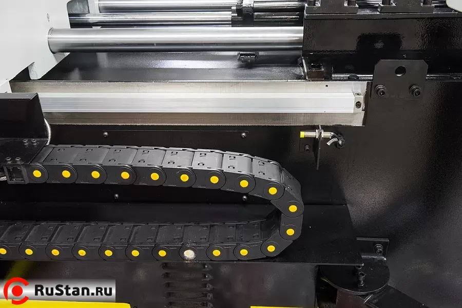 - Длина подачи заготовки контролируется автоматически c ЧПУ (CNC), движение по линейным направляющим
