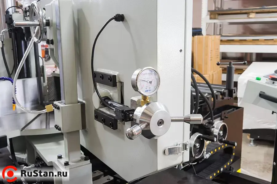 - Автоматический зажим и подача материала в зону резания, гидравлический привод с PLC контроллером