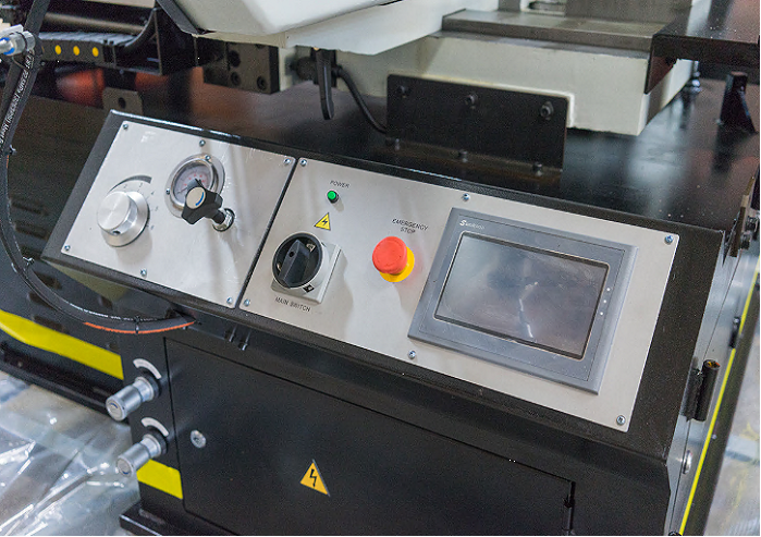 - Станок оснащён серводвигателем для плавной регулировки скорости вращения полотна 15-90 м/мин